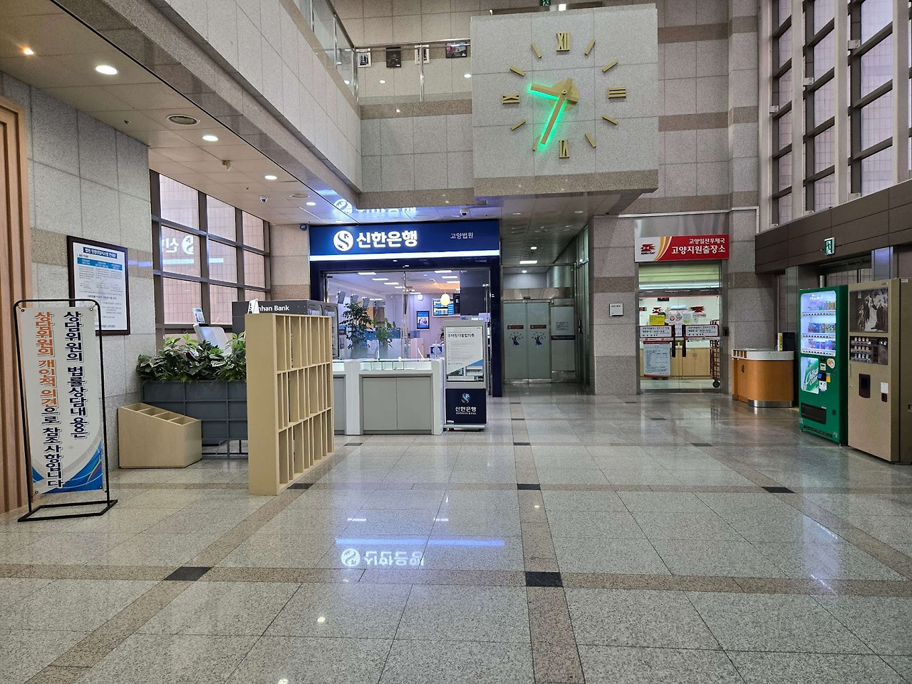 금속 탐지기를 통과하면 정면에 신한은행과 우체국이 보이네요.